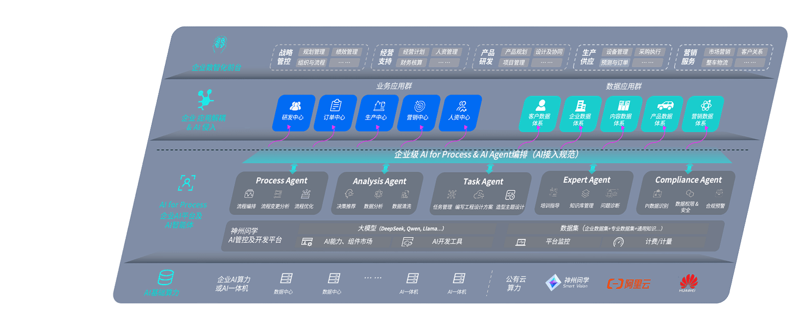 端到端的一站式AI工作空间深度融合了从企业战略规划到日常经营的全流程业务板块,,定向解决车企内部领域多、、、部门多、、、、链条长、、、场景碎片化等难题,,,支持车企快速构建以AI为核心的生产力写作体系,,,,实现任务执行与AI能力的无缝集成与交互